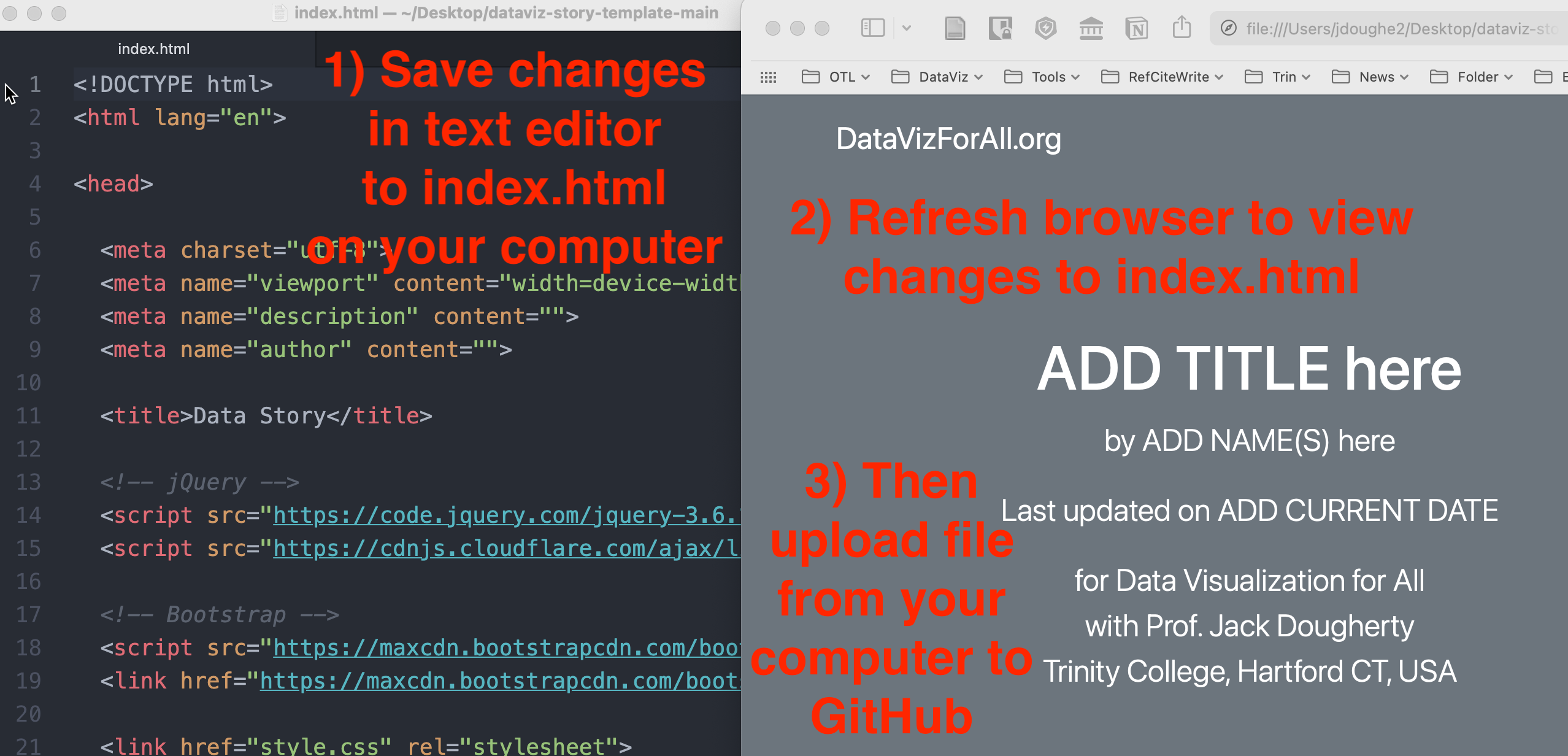 Instead of slowly making edits on GitHub and waiting for them to appear online, you can quickly make multiple edits in your local computer and view them instantly in your browser. Here's a list of steps: